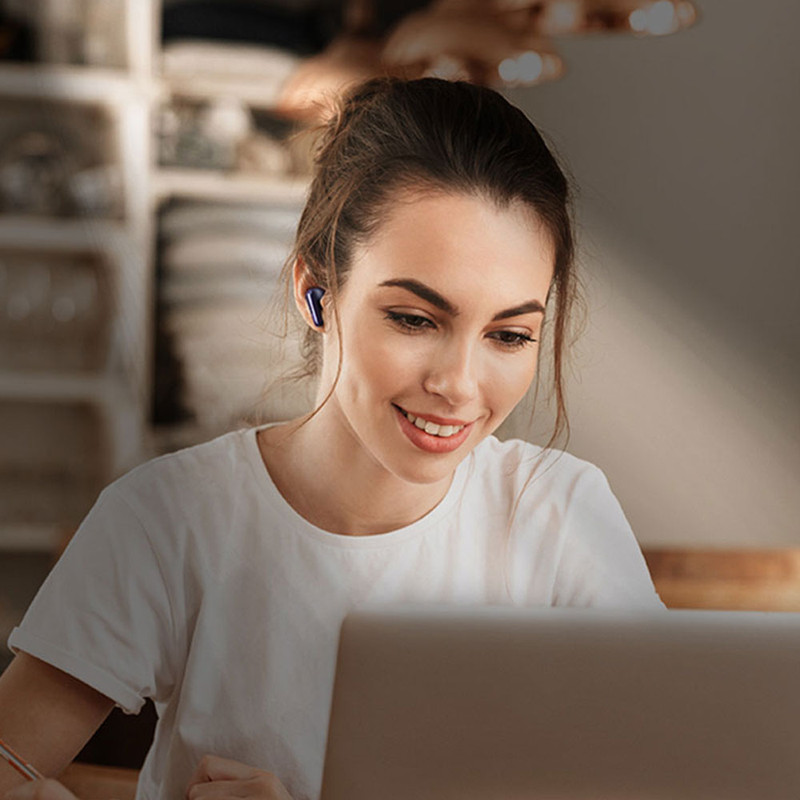 هدفونهای بیسیم با نوع ساختار In-Ear یا داخل گوش اگر راحتی و قابلیت استفاده در طولانی مدت را نداشته باشند، به گزینهای خسته کننده و بد تبدیل میشوند. هدفون T13X با توجه به وزن سبک هر گوشی، ابعاد مناسب و البته اورگونومیک بالا، حتی در استفادههای طولانی مدت هم به گزینهای ایدهآل تبدیل میشود. با توجه به فرم گوش متفاوت هر فرد، وجود سه سری سیلیکونی مختلف در جعبه این هدفون، سازگاری بالایی را به آن میبخشد. ابعاد هر هدفون برابر با 23.6×17.5×33.7 میلیمتر است و کیس شارژ هم با ابعادی برابر با 29.8×53.4×54.8 میلیمتر، قابلیت حملونقل خوبی را از خود نشان میدهد. فرامین دستوری مکالمه، موسیقی و دستیار صوتی در هدفون T13X با بازخورد لمسی اتفاق میافتد. پاسخ دادن به تماس یا پایان دادن به آن با دو ضربه سریع امکانپذیر است. با دو ثانیه نگهداشتن انگشت روی هدفون، بازخورد لمسی آهنگ بعدی را فعال میکند. همچنین اگر نیاز به دستیار صوتی داشتید، با سه بار ضربه روی هدفون چپ میتوان آن را فراخوان کرد. بلوتوث نسخه 5.3 با سطح پوشش 10 متر این امکان را به شما میدهد که بدون قطعی، به موسیقی مورد علاقه گوش کنید. البته باید به این نکته توجه کنید که بهتر است نسخه بلوتوث موبایل شما هم همخوانی با نسخه هدفون داشته باشد تا از نهایت کارایی آن استفاده کنید. با این وجود هدفون بیسیم T13X با گوشیهای اندروید 6.0 و بالاتر و iOS 12.0 و بالاتر سازگار است تا قابلیت اتصال به هر گوشی را داشته باشد.