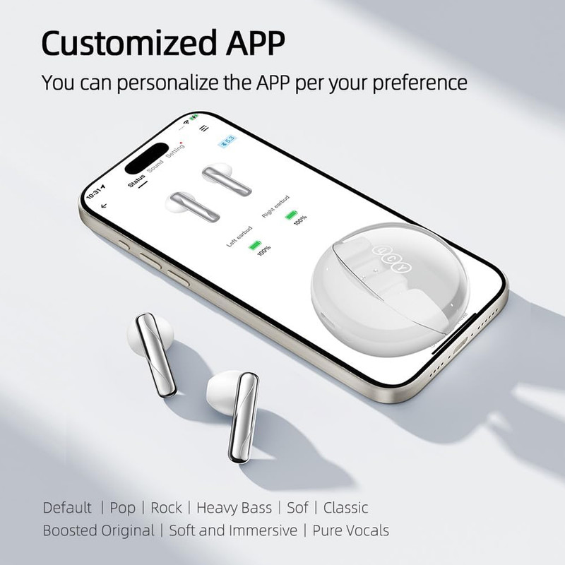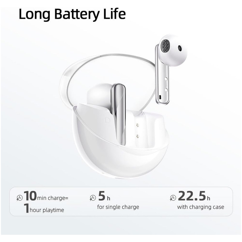 | سایر مشخصات | طراحی شفاف، میکروفون چهارگانه برای مکالمه شفاف، حالت مخصوص گیمینگ با تأخیر کم (68 میلیثانیه)، مقاومت در برابر پاشش آب (IPX5)، کنترل لمسی، سازگاری با اپلیکیشن QCY، دارای درایور 13 میلیمتری با پوشش تیتانیوم برای صدای قوی و باکیفیت. قابلیت کاهش نویز باد تا سرعت 25 کیلومتر بر ساعت. |